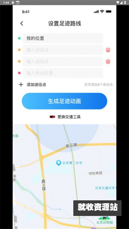 2、不仅可以随时搜索地点查看位置,还可以生成足迹。