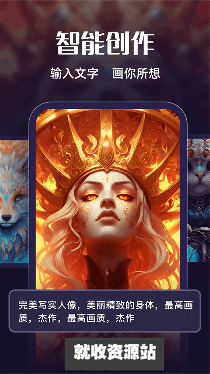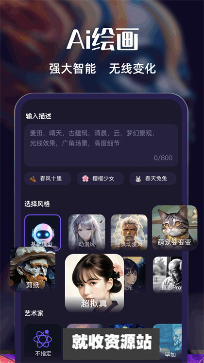 2、输入关键词,app里头的ai技术能您的想象力,将枯燥无味的关键词瞬间变成创意十足的画作。