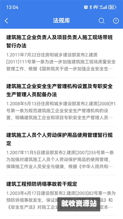 3、收录了非常齐全的建筑法规和规章制度知识,让施工人员能够更加合规操作!