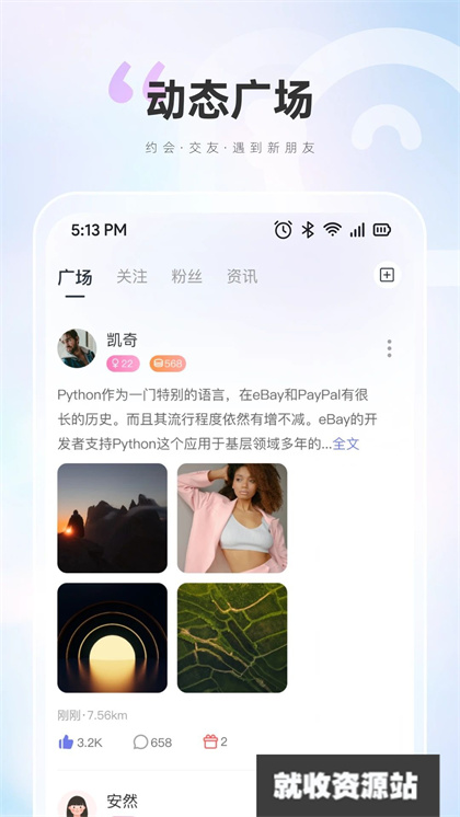 2、用户可以发布自己的生活动态和想法,在动态广场里都是可以发布的;