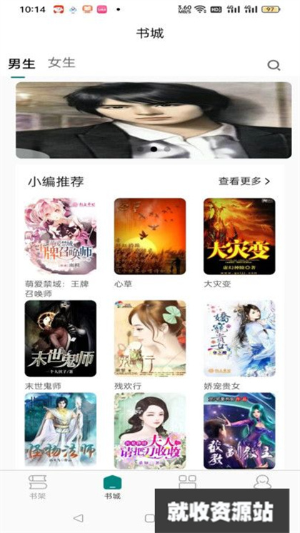 2、几十种不同题材的书籍资源都有,搜索书籍方式多,灵活追书;