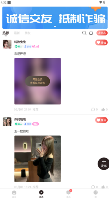 1、用户可以发布个人动态,实时分享生活点滴,吸引更多潜在朋友;
