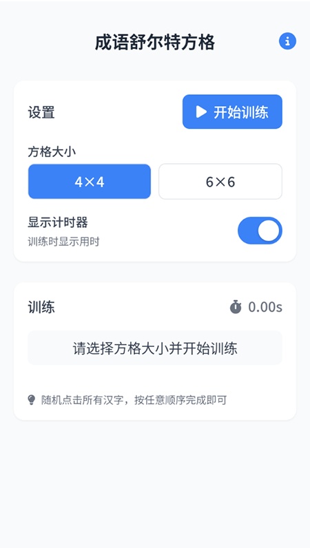 舒尔特方格表格app下载安装手机版是一款用于注意力训练的工具,使用者需要在规定时间内按一定顺序点击相应方格,在寻找目标数字的过程中,需要快速分配和集中注意力。舒尔特方格表格app官方版免费下载提供标准化方格训练,支持自定义内容,记录分析训练数据。用户可从简单的级别开始,逐渐提升难度,以适应不同的训练阶段和水平,反复练习能加强大脑的注意力控制能力,进而提高专注力水平,同时锻炼视觉广度,提升视觉应激反应能力和快速阅读能力。