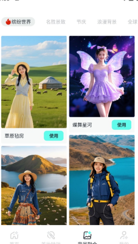 3、搭载生成式AI技术的智能拍摄美化工具,景融合大师可实现百种虚拟场景一键合成。