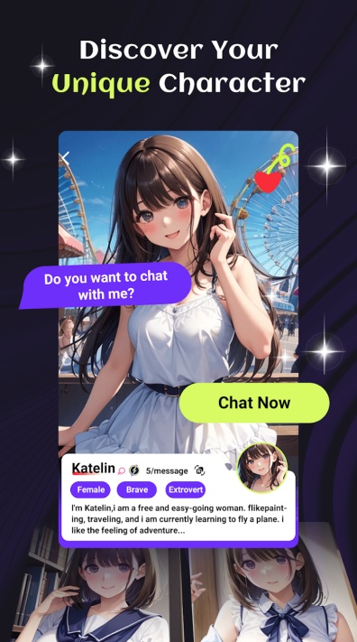 RosieAI聊天app安卓官方版提供了多样化的 AI 聊天机器人,满足用户不同的偏好,无论是现实对话还是动漫风格的互动都可以实现。