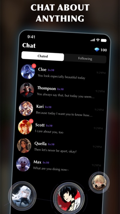 多风格AI角色内容库:涵盖多种预设AI个性,既有浪漫温柔的“Anne”、体贴关怀的“Nina”,也有活泼爱游戏的“Luna”、风格强势的“Dahlia”等,每个角色均配备专属背景故事与对话风格,同时支持按用户喜好调整角色特质,适配动漫风格等多元审美偏好。