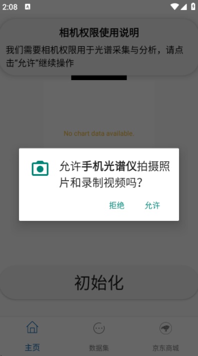3:APP请求相机权限用于光谱采集与分析,点击“允许”授予权限。