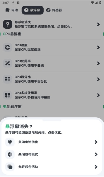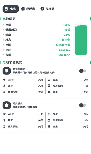 2、最贴心的就是悬浮窗设计啦,不用反复打开软件,玩手机的时候随时能看到电池状态,电量、温度啥的一眼清楚,简直是电量焦虑星人的福音!