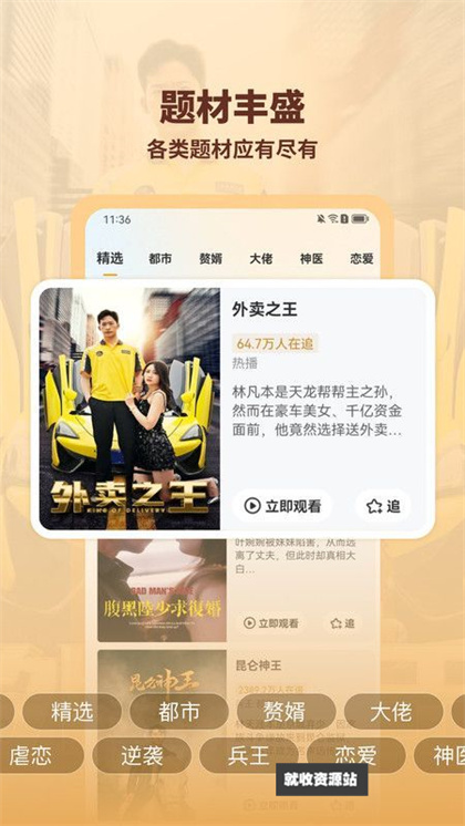 1、短剧题材多样化,选择的范围更加的广泛,解决了大家不知道看什么剧的烦恼。