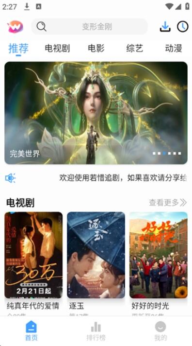 1、若惜追剧app官网最新版持续更新全网影视资源,不断优化播放线路与软件稳定性,软件界面清爽干净、上手操作简单,片源稳定好用。