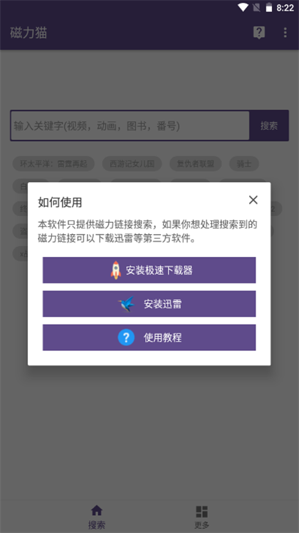 磁力猫最新版官方版下载是一个非常实用的磁链接搜索软件,用户可以自由选择合适的平台使用。磁力猫在线搜索cilimao安卓版可以让你找到更多精彩的资源,通过关键字快速搜索视频和动漫,可以快速查询整个网络想要的真实资源,一键下载或感受,整个软件没有广告,磁力猫手机版默认采用6个BT资源网站,搜出来的资源质量都还不错,不用任何设置,打开就能使用,磁力猫手机版专注的是BT资源搜索,需要用IDM+或迅雷下载资源。