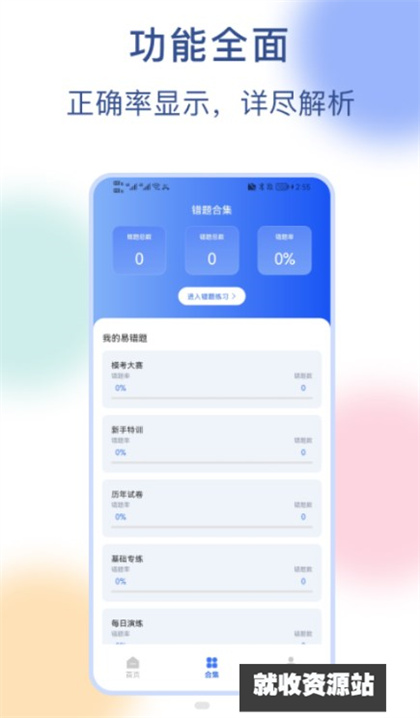 3、精选题库,权威解析,跟着APP一起来练习复习,快速进步,不再裸考。