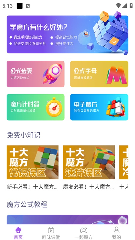 魔方教程app下载免费版安装【06.02更新】是一款专为魔方爱好者设计的教学应用,大家在魔方的还原过程需要不断在脑海中模拟方块的位置和转动,比如判断 “如何通过几次转动让某个色块归位”,可以显著增强对三维空间的感知和想象能力。魔方教程app下载2025最新版整合多阶魔方教学视频与图解,内置虚拟魔方,玩家可在手机或电脑上对其进行 360° 旋转操作,支持手势控制,如向右轻扫可切换打乱状态,让玩家随时随地练习还原,无需真实魔方在手,实时记录数据,手势交互创新,场景化课程设计,助力从入门到高手。