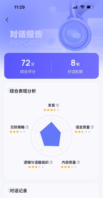个性化学习规划:通过对口语能力诊断精准定位薄弱项,并动态生成专项提升计划和内容,提升学习效率。