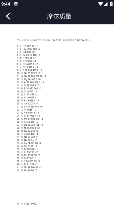 化学公式:包含分子式、结构式及摩尔质量等基本化学公式信息,助力用户掌握化学基本概念。
