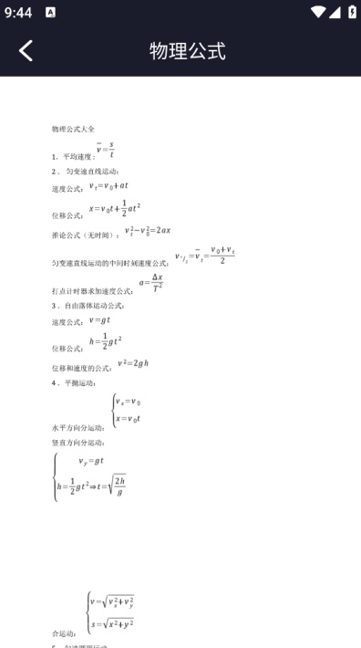 物理公式:提供常用物理公式,方便用户查询和学习物理知识。