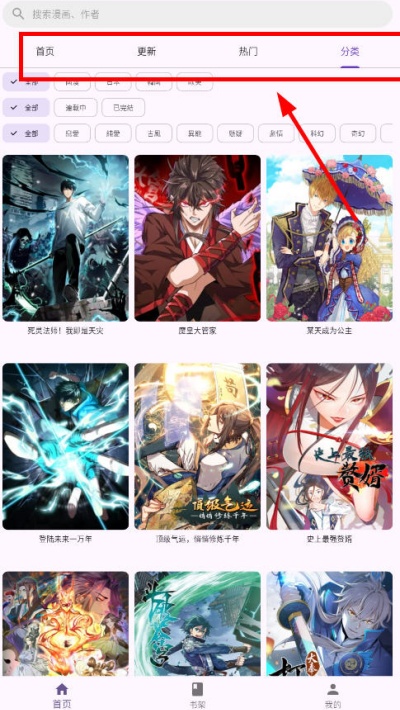 按作者、类型、热度、更新时间等多维度筛选漫画。