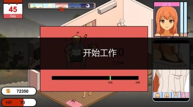 4.点击页面可查看损耗的HP和可获取的金币,点击开工即可进入女主角的家中