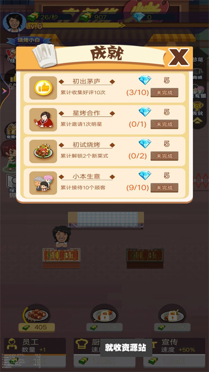 2、解锁和升级各种烧烤技能,更快的满足顾客需求。