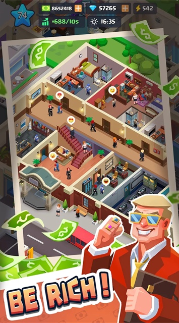 放置与策略结合:游戏既有轻松的点击升级操作,适合碎片化时间体验,又有深度的战略布局空间,玩家需合理规划设施建设、优化租户结构等,兼顾了休闲玩家与策略爱好者的需求。