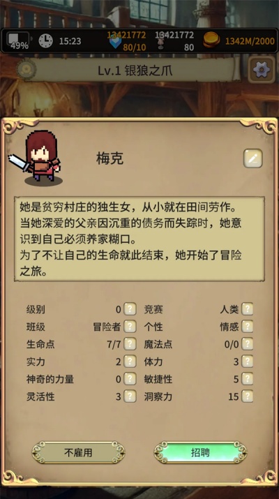 合理雇佣冒险者:游戏初期,资金有限,要根据任务需求和冒险者的能力来雇佣。优先选择那些属性较为均衡,或者在某一特定方面有突出能力的冒险者,比如攻击力高的适合执行战斗类任务,防御力强的适合探索危险区域。可以多查看冒险者的详细信息,了解他们的技能和特长,再进行选择。