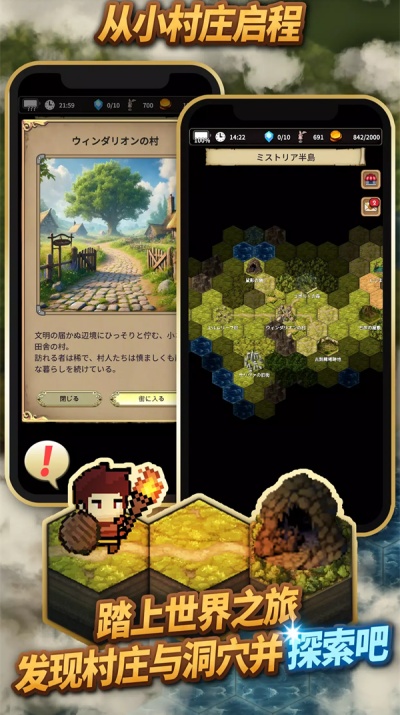 2、位于遥远边境的一个小村庄,一个充满幻想的世界。玩家可以在这个独特的环境中建立自己的冒险家堡垒,并开始一段奇妙的旅程。