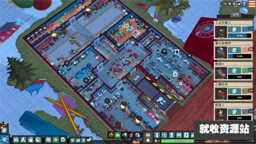 这里就直接说人员配置了!:前期9:1的员工:搬运工,装配技师比其他技师维持2:1,就是4个装配2铁3木,塑料一直都不重要,有塑料挤压机才需要它。中后期8:2的员工:搬运工,装配技师比其他技师可以到3:1,最后我达到4:1。最后搬运工只升一个到维修其他全超级搬运就行,维修后期需要维修的不会停下来让维修工维修(装配台),还是得时刻盯着。