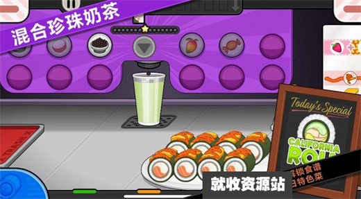 2、佩奇生活日本料理游戏学习不同的烹饪技巧,以完成游戏关卡里的制作任务。