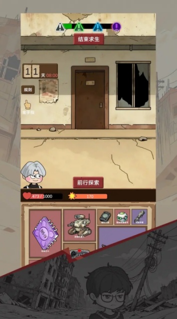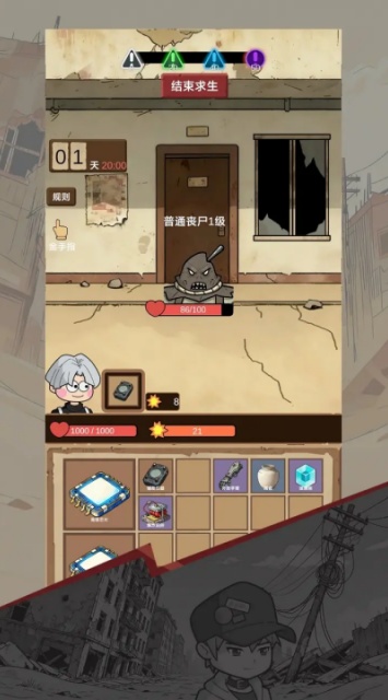 宿舍求生废土篇游戏安卓最新版是一款以校园末日为背景的生存类手游,主打 “资源管理 + 策略合成 + 昼夜循环挑战”,玩法轻量化但充满生存压力,适合喜欢碎片化生存体验的玩家。宿舍求生废土篇游戏手机版玩家在里面就待在灾后的宿舍里,核心就是俩事儿:找资源、防怪物。白天得在宿舍楼道、隔壁房间瞎转悠,翻找能用的东西 —— 比如木板、绳子、还有能当食物的零食,甚至能拆旧课本当燃料。这些玩意儿攒着有用,能拼点防御的围栏,或者做个简易武器。