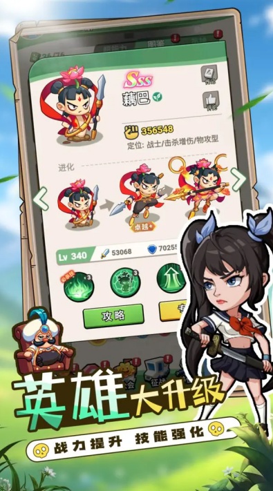 3、最有意思的是,S 级以上英雄有三种形态,升级后外观和技能都会变,比如 SSS 级的 “藕巴” 形态解锁后,技能特效超炫酷。
