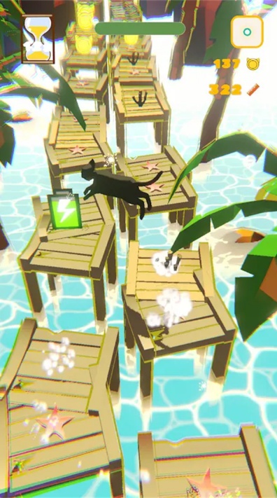 4、从引导黑猫起跳,到沉浸式体验场景,操作不难但需要精准,既能享受跳跃乐趣,又能沉浸在舒缓的游戏环境里。