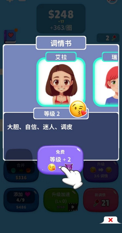 2、消耗“心”兑换金钱或“约会卡”,使用约会卡开启与特定女孩的专属互动剧情。