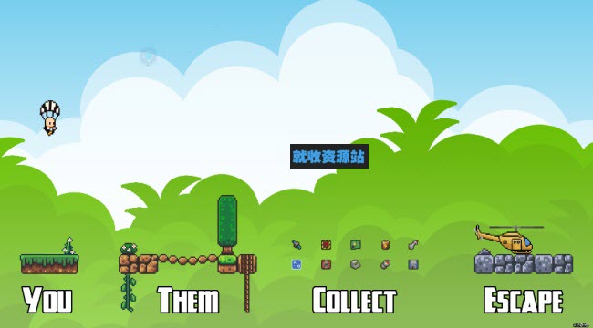任务完成:玩家需要在有限的时间里完成任务,收集指定的物品或情报。在收集过程中,要躲避敌人的追捕,玩家只有 3 条性命,若被敌人抓到三次就会挑战失败。玩家也可以跳起来踩敌人的头来消灭他们。