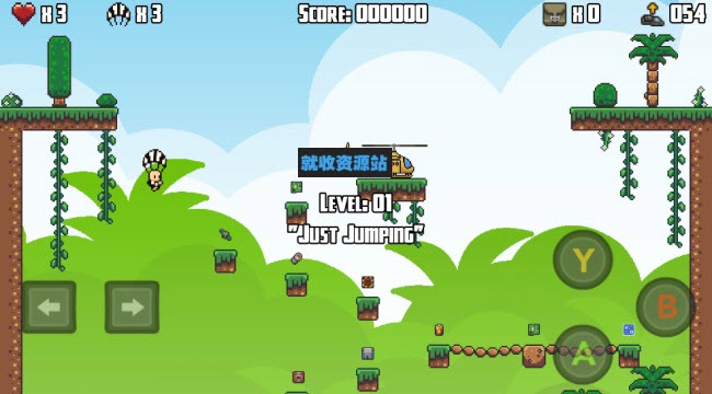 基本操作:进入游戏后,点击 “play” 开始游戏,通过左边的按钮控制人物移动,按 “A” 键控制跳跃。