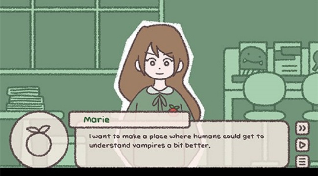 核心设定:你扮演一名好奇的志愿者,参观专为吸血鬼服务的 “番茄诊所”,与吸血鬼岳子、玛丽互动,了解他们的日常、文化与医疗需求,还能参与简单医治流程。